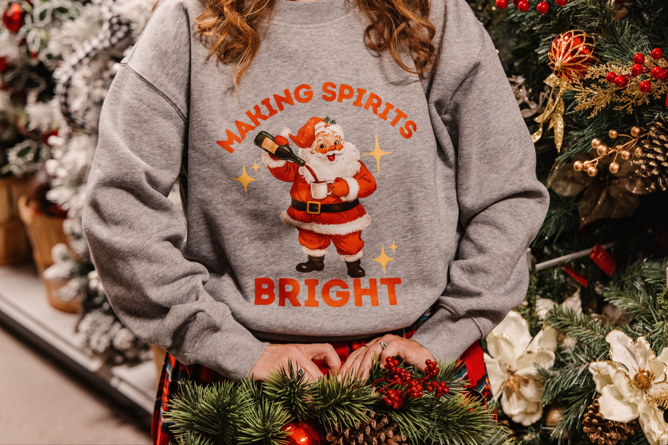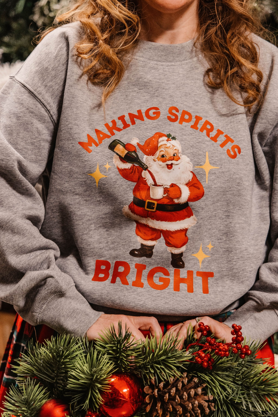 Our vintage gray sweatshirt features Santa doing what we're all really doing this season – making spirits bright, one pour at a time. Because who says holiday cheer can't come with a wink?