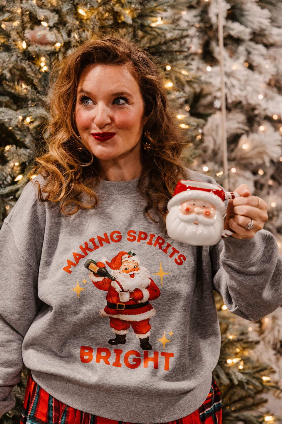 You, looking like you stepped out of a vintage holiday card, while wearing exactly what December calls for – a perfectly soft gray sweatshirt featuring Santa doing what we're all doing this season.